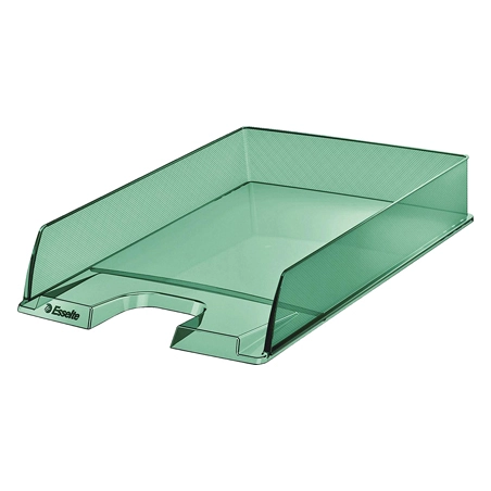 La bandeja sobremesa Esselte Colour Ice es el accesorio perfecto para quienes buscan organizar sus documentos con estilo y eficiencia. Fabricada en plástico duradero, esta bandeja se convertirá en un elemento esencial en tu escritorio gracias a su diseño moderno y funcional. Su color verde translúcido no solo añade un toque vibrante a tu espacio de trabajo, sino que también es parte de la línea icónica Colour Ice de Esselte.