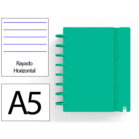 Este cuaderno A5 de la línea Ingeniox combina funcionalidad y durabilidad en un formato compacto, ideal para quienes buscan un soporte confiable para sus apuntes diarios, ya sea en el ámbito escolar, profesional o personal. Su diseño con encuadernación por discos permite una gestión flexible del contenido, mientras que su cubierta de foam en color verde ofrece protección ligera y resistente.