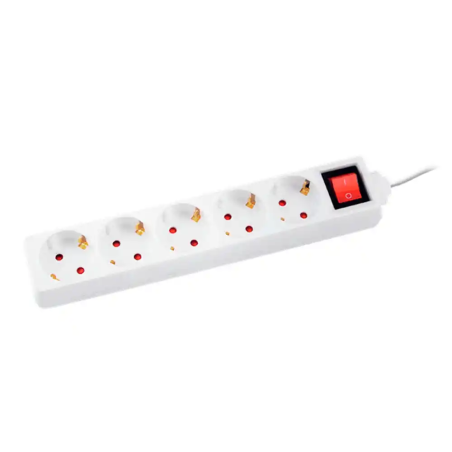La regleta Q-Connect es un accesorio esencial para cualquier hogar u oficina que requiera de una gestión eficiente de dispositivos eléctricos. Con 5 tomas de corriente y un interruptor integrado, esta regleta está diseñada para ofrecer seguridad y eficiencia. Su diseño en color blanco no solo aporta un toque de elegancia, sino que también permite su integración discreta en cualquier entorno. Fabricada con materiales de alta calidad, como un cable de cobre puro y un cuerpo de polipropileno resistente a las llamas, esta regleta asegura máxima protección y durabilidad.