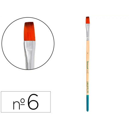 Este pincel número 6 de punta plana está especialmente diseñado para trabajos con pintura acrílica, acuarela y gouache/témpera. Fabricado con pelo sintético certificado FSC, ofrece una combinación ideal de resistencia, flexibilidad y precisión, permitiendo trazos amplios y definidos con excelente control, incluso en aplicaciones con diferentes cantidades de agua.