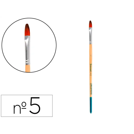 Descubre un pincel diseñado para ofrecer precisión y versatilidad en tus trabajos artísticos. Este pincel nº 5 con punta filbert o lengua de gato está elaborado con pelo sintético certificado FSC, ideal para técnicas con pintura acrílica, acuarela y gouache. Su forma particular combina lo mejor de los pinceles planos y redondos, facilitando tanto trazos amplios como detalles finos, perfectos para artistas que buscan controlar y dar vida a sus creaciones con facilidad.