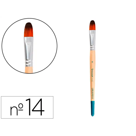 Este pincel nº 14 con punta filbert o lengua de gato es una herramienta ideal para la pintura acrílica, acuarela y gouache/témpera. Fabricado con pelo sintético certificado FSC, ofrece una combinación equilibrada de fuerza, flexibilidad y resistencia, permitiendo un control preciso y una excelente respuesta en la aplicación de color. Su forma ovalada y ligeramente plana facilita tanto trazos finos como amplios, siendo perfecto para mezclas, difuminados y detalles cuidadosos.