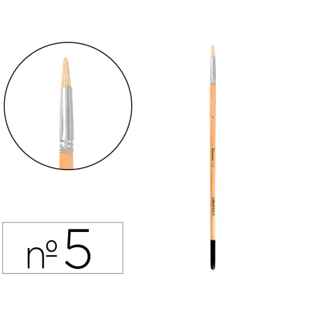 Este pincel nº 5 de punta redonda está especialmente diseñado para la pintura al óleo y acrílica, ofreciendo una herramienta versátil y duradera para artistas de todos los niveles. Fabricado con pelo de cerda natural certificado FSC, asegura una calidad superior y un compromiso con la sostenibilidad ambiental. Su forma y materiales lo hacen ideal para aplicar pinturas densas con precisión y texturas variadas.