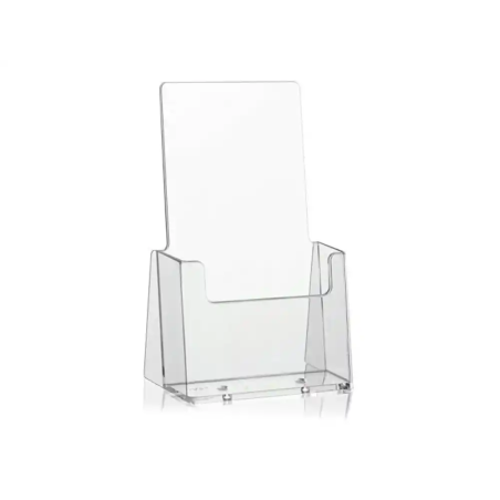 Este expositor sobremesa está especialmente diseñado para la presentación y organización eficiente de folletos y documentos en formato A5 en posición vertical. Fabricado en poliestireno transparente, combina resistencia y estabilidad, facilitando una visualización clara del contenido y un acceso rápido gracias a su hendidura frontal. Su diseño compacto y robusto lo hace ideal para entornos profesionales que requieren una presentación ordenada y accesible de material informativo.