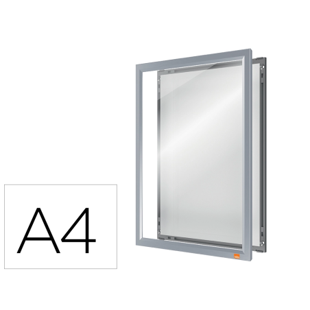 Este porta pósters montado en la pared tiene un elegante marco de clip de perfil bajo, esquinas biseladas sin fisuras y un mecanismo de cambio de contenido realmente innovador. Sólo tienes que retirar el marco de la pantalla frontal, cambiar el contenido detrás de la cubierta transparente y volver a colocar el marco de la pantalla con una simple conexión push click fit. Esta solución de señalización estable y segura cuenta con un panel trasero que se fija firmemente a la pared mediante un montaje en esquina, lo que permite sustituir el contenido sin necesidad de retirar el marco de la pared. El innovador diseño mejora una solución de producto tradicional haciendo que la sustitución de los documentos sea un proceso rápido y sencillo. Tamaño de la superficie de exposición A4.