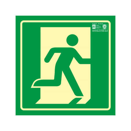 Este pictograma de señalización de salida de emergencia derecha está fabricado en PVC fotoluminiscente, garantizando visibilidad tanto en condiciones normales como en situaciones de poca luz o cortes de energía. Con unas dimensiones de 224 x 224 mm, ofrece un tamaño adecuado para ser claramente visible en interiores, ayudando a cumplir con las normativas de seguridad en señalización de emergencia.