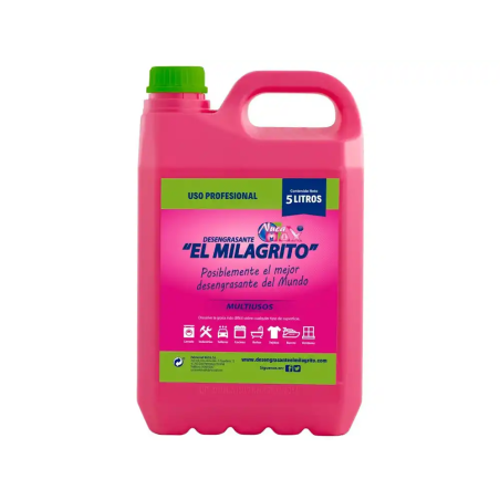 El Limpiador Desengrasante Nuca Max El Milagrito en garrafa de 5 litros es una solución concentrada especialmente diseñada para eliminar grasa acumulada en ambientes industriales, comerciales y domésticos. Su fórmula potente permite una limpieza profunda y eficaz en cocinas, maquinaria, pisos y diversas superficies, ofreciendo un rendimiento óptimo en tareas de desengrase intensivo.