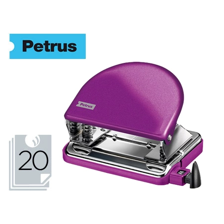 Descubre la fusión perfecta entre funcionalidad y diseño con el taladrador Petrus 52 WOW en color violeta metalizado. Este elegante y robusto taladrador es ideal para quienes buscan eficiencia sin sacrificar estilo en su espacio de trabajo. Diseñado para perforar hasta 20 hojas de papel con facilidad, es el compañero perfecto para oficinas, escuelas o el hogar.